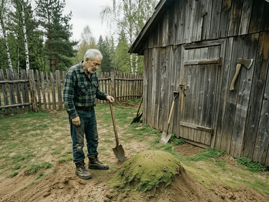 • Mikhail Zorov je živio u malom selu, Vjazivka, daleko od buke i stresa gradskog života. Ovaj bivši vojnik odlučio je povući se u tišinu prirode i posvetiti se jednostavnom životu. Svakog dana, Mikhail je izlazio iz svoje stare drvene kuće, pio topli čaj i na trenutak zastao da pogleda u dvorište. Iza štale, njegov pogled uvijek bi zalutao prema jednom neobičnom detalju – malom brdu koje je stajalo tamo, gotovo nezamijećeno.