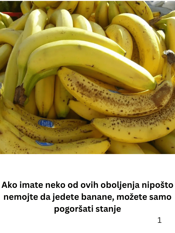 - Osim navedenih stanja, postoji i grupa ljudi koja bi trebala biti oprezna zbog problema s iritabilnim crijevima (IBS). Banane sadrže oligo-fruktane – složene ugljene hidrate koje organizam teško vari. Kod osoba sa sindromom iritabilnog crijeva to može izazvati nadutost, bol i nelagodu u stomaku. Iako se zrele banane lakše vare, prekomjerna količina može pogoršati simptome. Stručnjaci zato savjetuju da se banane u ovakvim slučajevima konzumiraju rijetko i u manjim količinama, te da se prati kako tijelo reaguje.