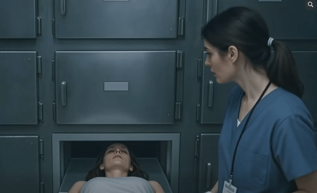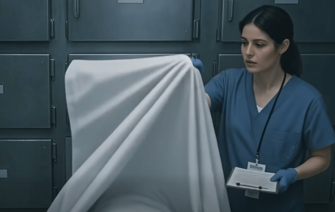 Međutim, te noći nije bilo sve kao obično. Osjećaj nečega neobičnog počeo ju je uznemiravati. Kao da je neko stajao iza nje i gledao je, iako je hodnik bio prazan. Osećala je prisutnost, nešto gotovo neuhvatljivo, nešto što je nije dopuštalo da mirno nastavi s poslom. Osim toga, nešto je škripalo ispod plahte, poput šuštanja, ali to nije bilo ništa što je mogla racionalno objasniti. Bilo je to nešto što ju je podsetilo na fiziološke reakcije koje telo može pokazivati nakon smrti — grčevi mišića, lagani pokreti, nešto što je već pre viđala.