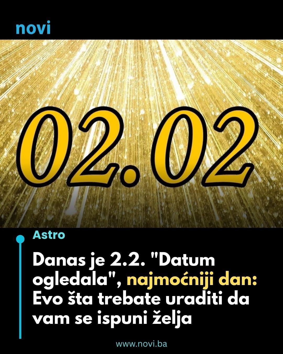 Drugog februara 2026. godine nastupa zrcalni datum 02.02.2026, a takvi datumi se u numerološkom i duhovnom smislu smatraju izuzetno snažnima. Ne zbog samog broja na kalendaru, već zbog osjećaja koji nose. Mnogi ljudi upravo na ovakve dane primijete da se stvari “slažu”, da se misli smiruju ili da se pojavi jasnija slika onoga što treba otpustiti, ali i onoga što tek dolazi.