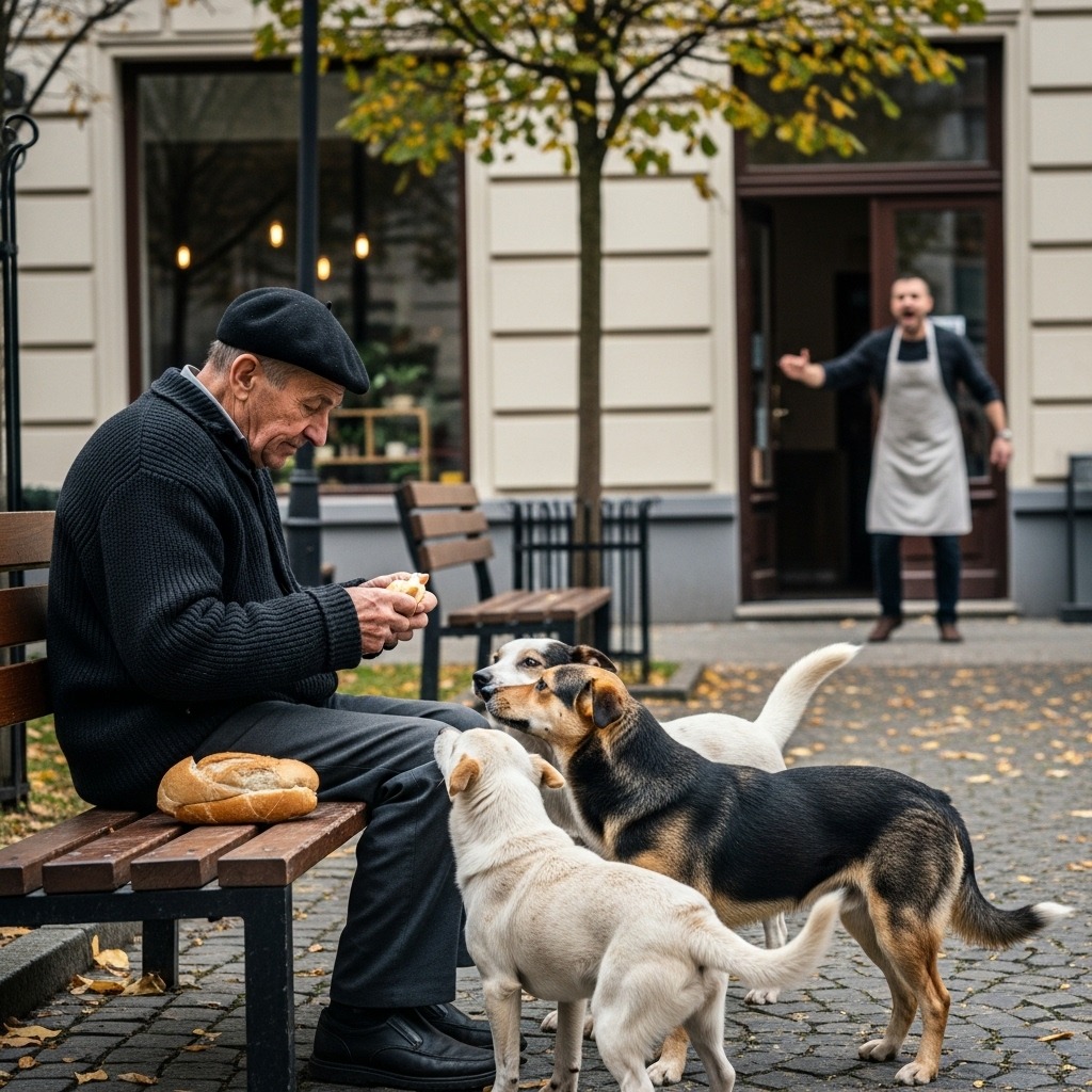 Ibro je imao osamdeset godina i životom je bio ispunjen tugom i teškom borbom. Svakog dana je izlazio u gradski park, svoj “dnevni boravak”, gdje je sjeo na istu klupu, ispod starog kestena, s polovicom somuna i malo salame, koje je kupio za ostatak svoje skromne penzije. Ali Ibro nije jeo sam. Tri psa lutalice – Žućo, Crni i šepava kujica – uvijek su bila uz njega, a Ibro im je nesebično davao većinu svog obroka, dok je on sam uživao samo u komadiću korice s jogurtom. Svi su ga promatrali, ali s gađenjem. Enver, vlasnik kafića preko puta, redovito je zadirkivao Ibru, smatrajući ga beskorisnim starcem koji samo hrani pse dok je zaboravio na sebe.