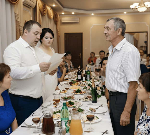 Kada je završila s čitanjem, podigla je pogled prema svom ocu. Njegove oči bile su spokojne. Nije bilo ni riječi, samo je papir pružila mladoženji. On je, zbunjen, uzeo papir i počeo čitati. Svatko u sali je šutio. Smijeh je nestao. Lica su se mijenjala, a šaputanja su bila tiha, gotovo nezamjetna. Na kraju, mladoženja je sjeo. Pred njim je bila istina koju nije očekivao.