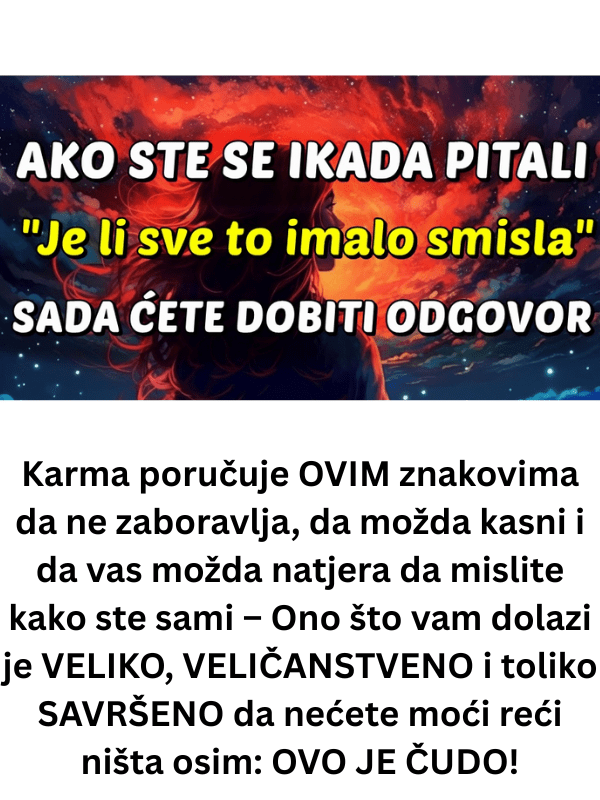 Zaključno, karma nikada ne kasni. Niti zaboravlja. Iako se čini da je sudbina nepravedna i da nas ostavlja da sami podnosimo teret, svaki trenutak tuge, svaka minuta nesigurnosti i godine tišine sakupljaju se i pretvaraju u nešto veličanstveno. I upravo tada, kad mislite da su svi odgovori nedostižni, karma donosi dar koji se ne može objasniti – ali koji se svakako osjeti u srcu. Ovaj dar nije riječ ili znak, već osjećaj dubokog razumijevanja i ispunjenja, kad konačno shvatite da je svaki vaš korak imao smisla.