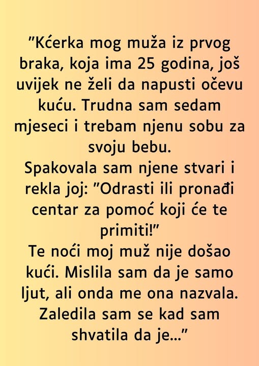 Kćerka koja je dosad živela sa svojim ocem suočila se sa potrebom da napusti dom, jer su prostorije postale pretrpane, s obzirom na to da se očekivala nova beba. Iako je njen boravak u domu bio razumljiv zbog ekonomskih izazova s kojima se suočavaju mladi ljudi, odluka njene maćehe da je natjera da se preseli izazvala je napetost u porodici. Nije bilo lako sagledati sve strane problema, jer je, s jedne strane, postojala opravdanost u želji da se napravi prostor za bebu, ali s druge strane, takva odluka donela je i emocionalne tenzije koje nisu mogle biti zanemarene. Blic ističe kako su upravo ovakvi trenuci ključni za razumevanje dubokih porodničnih problema koji se često zanemaruju.