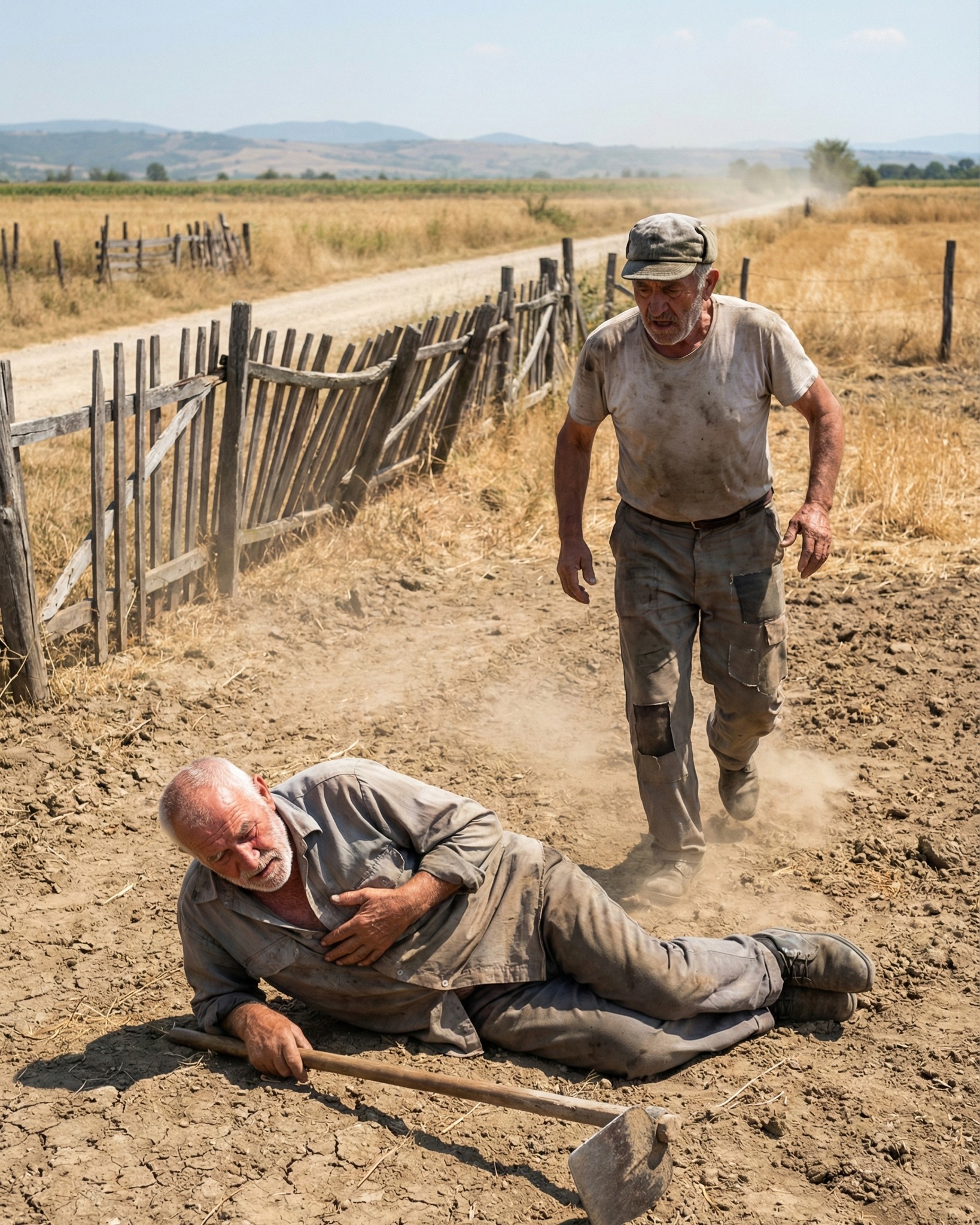 Ristan je bio star, iznemogao od godina i napornog rada na svom imanju. Bez obzira na to što su njegovi sinovi otišli u grad i zaboravili na njega, Ristan je i dalje bio vezan za svoju zemlju. Bio je to dan kao i svaki drugi, podne sunce je pržilo, a Ristan je radio na njivi kao da ima trideset godina. Niko od njegove porodice nije bio tu da mu pomogne, a jedini sused, Milun, kojeg je godinama smatravao neprijateljem, sada je bio poslednja osoba koja mu je mogla pomoći. Sve je počelo zbog sitnog spora oko zemlje, zbog jedne krivine uz potok. Godinama su se svađali, sudili, a njihova mržnja je bila jača od svega.