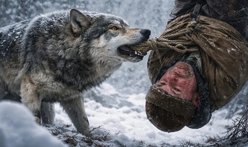 - Dok su ga vezivali, jedan od krivolovaca predložio je da ga obese na drvo kao živog mamca za medvjede i vukove. Čuo je samo smeh dok su ga podizali naglavačke, a konopac je bio čvrsto zategnut. Krv mu je odmah udarila u glavu, a pred očima mu je počelo da se smračuje. „Lep provod,“ rekao je jedan od krivolovaca, „sutra se vraćamo po tvoje kosti.“ Nasmijali su se i otišli, ostavljajući ga bespomoćnog, visoke glave, bez nade da će preživjeti.