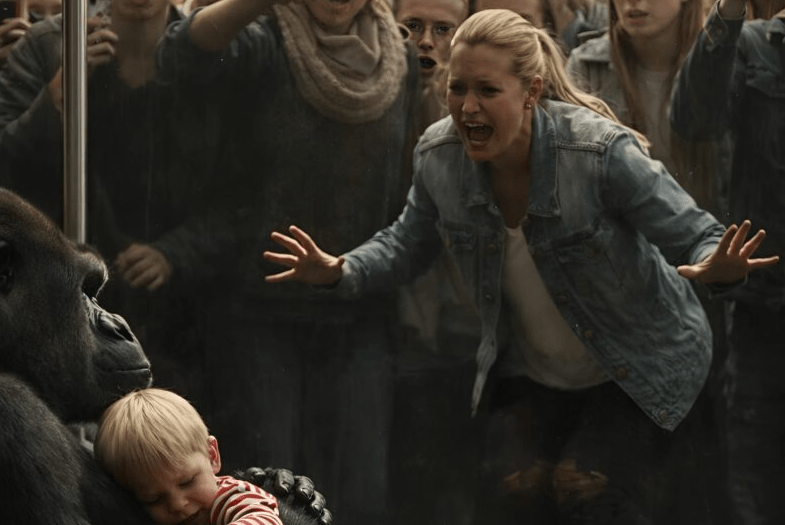 Dečak je, na nesreću, slučajno upao u ograđeni prostor sa gorilama. Iako je sve delovalo kao mirna poseta zoo vrtu, ubrzo je nastao pravi haos. Posetioci su počeli da vrište i pozivaju pomoć, dok je majka u očaju trčala duž ograde, moleći pomoć. Ispod stakla je bio prizor koji je bio zastrašujući: mali dečko je sedeo, uplakan, dok je ogromna gorila polako prilazila njemu. Ovo je izazvalo paniku među prisutnima jer je svima bilo jasno da bi ovo moglo završiti tragično.