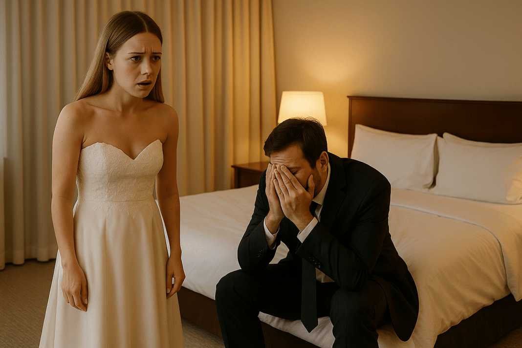 - Kada je noć pala i mladenci se povukli u hotelsku sobu, prostor je još uvijek mirisao na šampanjac i bukete koje su gosti ostavili iza sebe. Ona je bila umorna, ali ispunjena srećom, skidala je veo dok je gledala muža kako joj prilazi s onim istim osmijehom koji nije spuštao cijeli dan. „Napokon sami,“ rekao je tihim glasom, i činilo se da sve vodi ka mirnoj i nježnoj noći.
