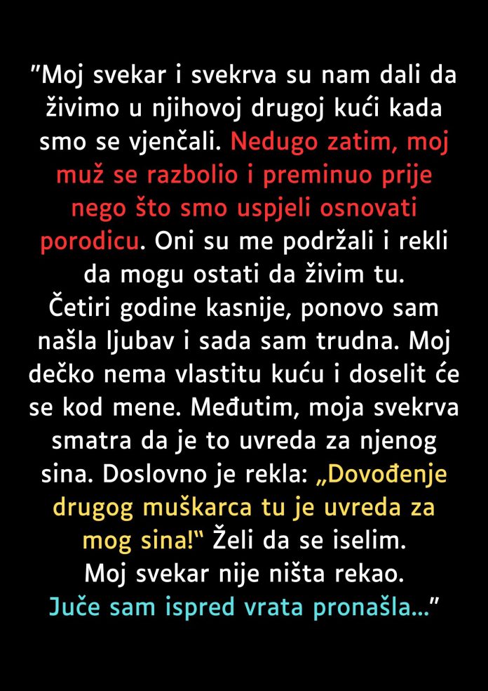 - Što bi trebala učiniti? Preporučuje se da bude jasna u svojim željama i granicama prema svekrvama, objasni im svoju poziciju i zahtjeve u vezi s njihovim postupcima, te da se, ako je moguće, dogovori za privremeno rješenje dok ne izgrade novi plan za svoju budućnost. U situacijama gdje je prostor za život neizvjestan, pronaći sigurno mjesto, izgraditi novi temelj za svoj život i definirati obiteljske odnose je ključno za zdrav emocionalni napredak.