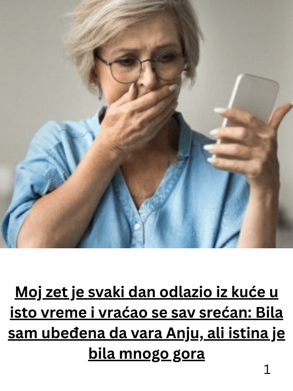 Počeo je da nestaje iz kuće. Svakog dana, u isto vreme. Bez reči, bez objašnjenja, bez ijednog naznake šta radi. I ono što je bilo još čudnije — vraćao bi se raspoložen kao da je osvojio ceo svet, nasmejan, lagan, gotovo euforičan. Kada bi ga pitala gde je bio, dobijala je samo mlako odmahivanje rukom i neubedljive odgovore.