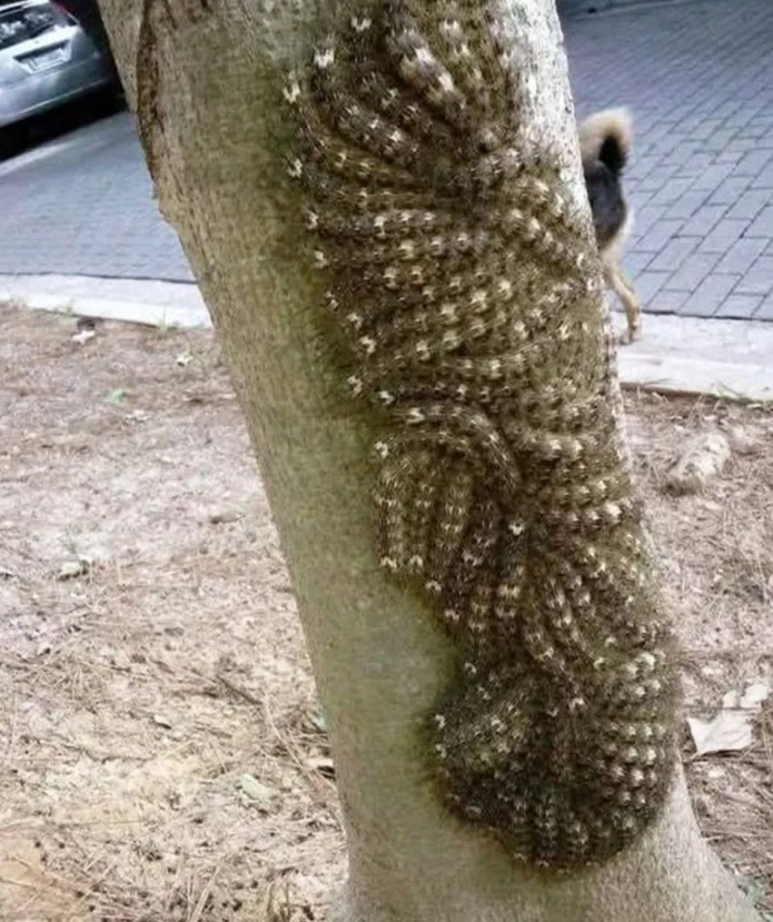 • Kad su pogledali pažljivije, shvatili su da to nisu nikakve pruge – već skupina gusenica koje su se savršeno kamuflirale na kori drveta. Njihova tijela su se stapala s bojom drveta, pa su izgledale kao prirodni deo kore. Iako na prvi pogled bezazlene, stručnjaci kažu da dodir s takvim insektima može izazvati ozbiljnu iritaciju kože, osip pa čak i opšte loše stanje kod osjetljivijih osoba.