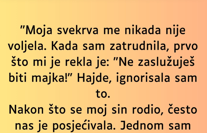 - Kada je suprugu ispričala šta se dogodilo, zajedno su donijeli vrlo tešku odluku. Bilo je jasno da osoba koja nema povjerenje i empatiju prema njima ne može imati ulogu u životu njihovog djeteta. Zbog toga su odlučili da potpuno isključe svekrvu iz života svog djeteta i da joj zabrane svaki kontakt s bebom. Iako prekid s članom porodice nije lako donijeti, osjećali su da je to neophodna mjera kako bi sačuvali sigurnost i emocionalnu stabilnost svog djeteta.