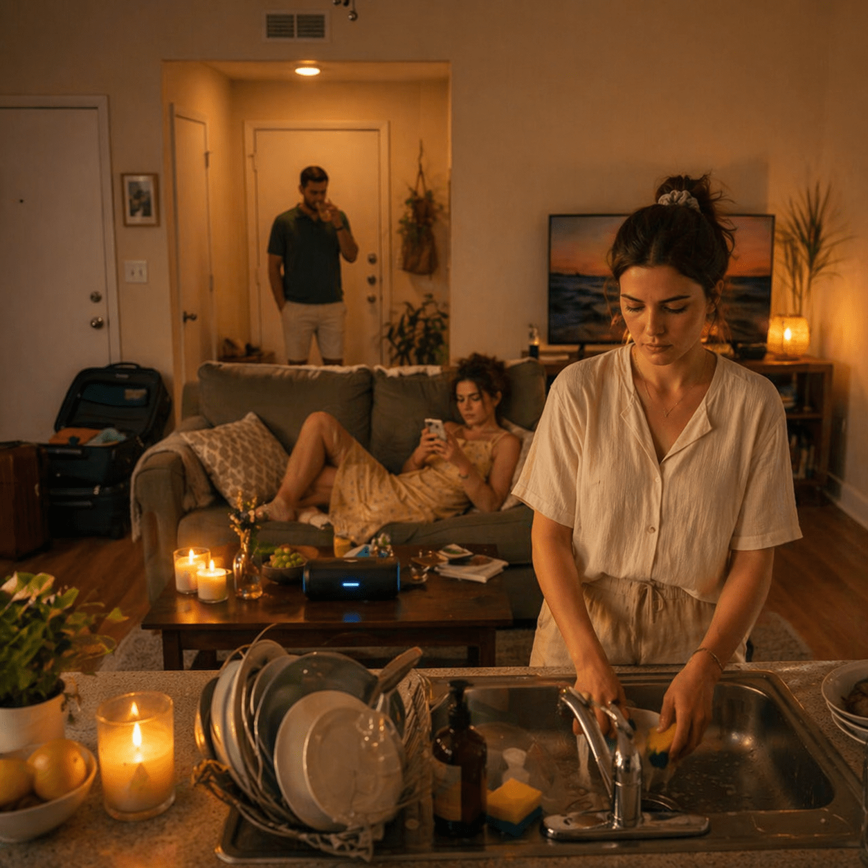 Međutim, kako su dani prolazili, počele su se pojavljivati sitnice koje se lako opravdavaju – barem u početku. Neoprani tanjiri u sudoperu, garderoba razbacana po hodnicima, punjači ostavljeni po ćoškovima, kese i papiri bez vlasnika. Muzika je često bila glasna, bez obzira na doba dana ili noći. Sve su to bile male stvari, ali male stvari u zajedničkom prostoru brzo prerastu u veliki teret. Žena je primijetila da sve češće skuplja tuđe stvari u tišini, gutajući nelagodu kako ne bi povrijedila nekoga kome je „ionako teško“.