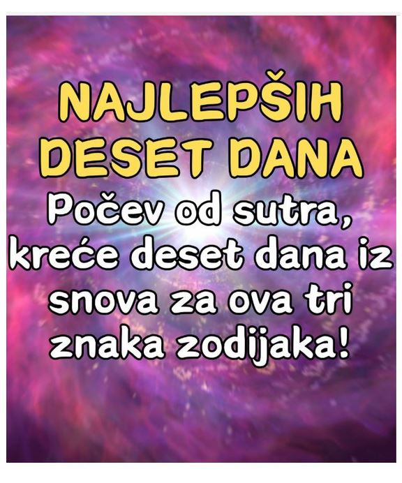 • Horoskop je za mnoge više od zabave. U vremenu neizvjesnosti, on često služi kao mali podsjetnik da se stvari mogu promijeniti nabolje. Upravo takav period dolazi za tri horoskopska znaka, kojima narednih deset dana mogu izgledati gotovo nestvarno. Kao da se sve ono što je dugo stajalo u mjestu konačno pokreće i dobija smisao.
