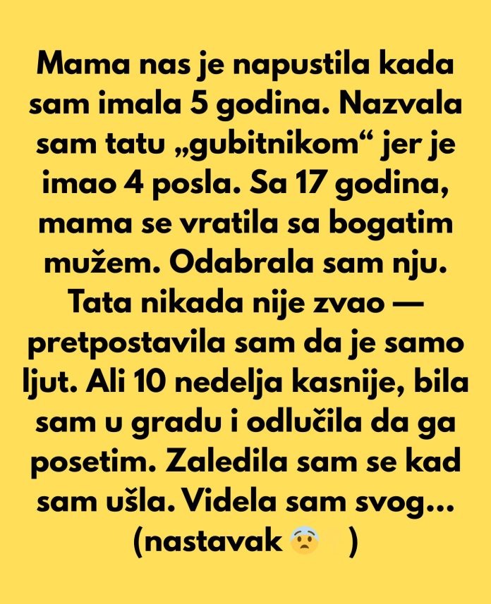 Te večeri, žena je prvi put posle nekoliko nedelja ostala u toj kuhinji duže nego što je morala. Stavila je vodu da provri. Izvadila čaj. Sedela je za stolom. Nije plakala. Nije se smejala. Samo je bila tu. I to je bilo dovoljno.