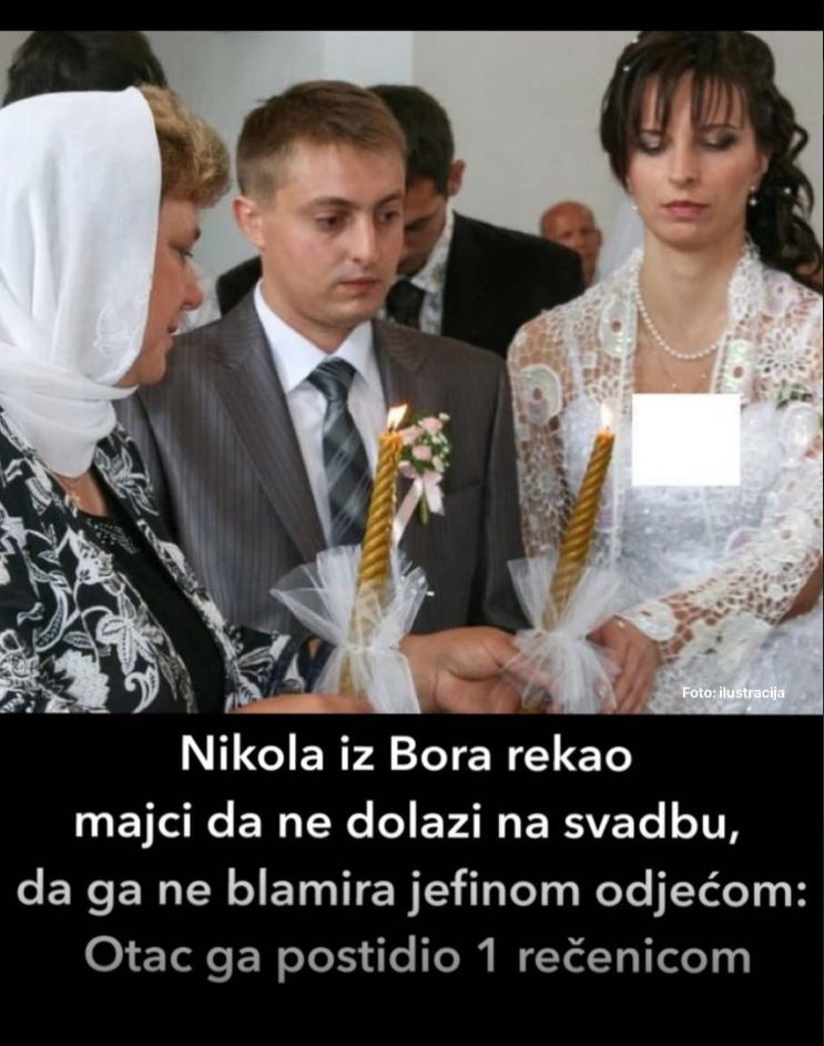 • Nikola, mladić iz Bora, odlučio je da njegovi roditelji ne prisustvuju njegovom vjenčanju jer su, kako je smatrao, njihova jednostavna odjeća bila neprimjerena za slavlje. Ova odluka izazvala je šok i tugu u njegovoj obitelji, a posebno je pogodila njegovu majku. Na obiteljskom okupljanju, koje je trebalo biti prilika za zbližavanje dviju obitelji, Nikola je izgovorio riječi koje su razbile atmosferu: “U svojoj jeftinoj odjeći biš izgledala neprimjereno.” Takav komentar duboko je povrijedio majku, a i njegov otac nije mogao ostati ravnodušan. Njegova oštra reakcija, podsjećajući sina na sve žrtve koje su učinjene za njegovu budućnost, izazvala je mnoge reakcije u javnosti, a brojni komentatori su stali na stranu roditelja. Čini se da su, u ovom slučaju, vanjski dojam i “što će drugi reći” postali važniji od samih obiteljskih vrijednosti i poštovanja.