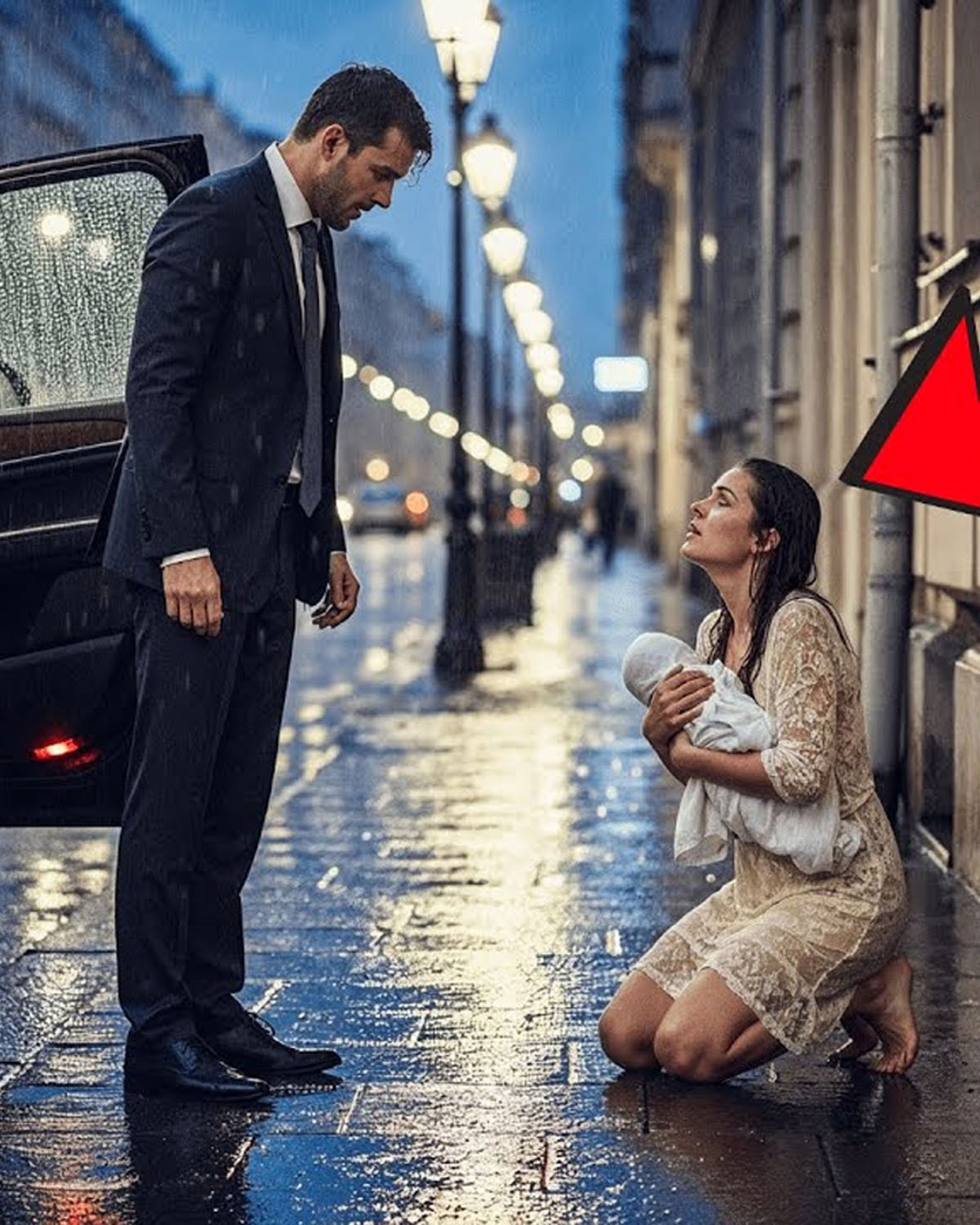 - Tog trenutka pred pločnikom je naglo zakočio crni automobil. Iz njega je izašao muškarac u savršenom odijelu, hladnog pogleda i odlučnog stava. Bio je poznat kao čovjek kome se ne prilazi bez razloga – krut, moćan, ograđen od slabosti. No, u očima mlade majke vidio je nešto što ništa u njegovom bogatstvu nije moglo kupiti – čistu, očajničku ljubav.