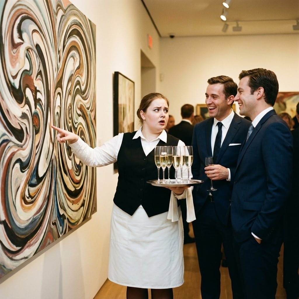 - Alina je uvijek imala smisla za humor, često se šalila da može postati „namještaj“ na događanjima. Oblačila je crne hlače, bijelu košulju i prsluk s logotipom restorana, te bi nestajala među ostalim zaposlenima. Njena uloga bila je jednostavna, ali bitna – donositi piće, brinuti se za ugostiteljske potrebe gostiju, zadržati uspravan stav i osmijeh, dok bi svi oko nje diskutirali o umjetnosti, velikim investicijama i luksuznim stvarima. Na njenim ramenima je ležao teret tih skrivenih poslova, a ona ih je obavljala s nevjerojatnom posvećenošću, premda je bila svjesna da njeno ime nikada neće biti spomenuto.