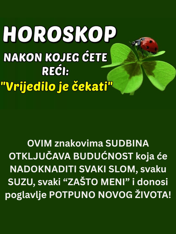 • Ali ono što se često ne vidi odmah, jest da sudbina ne šuti, nego priprema teren za nešto veće. Kada se zatvore stara vrata, to nije kraj puta, već nagovještaj da se otvara potpuno novo poglavlje. U tom smislu, ovaj horoskop nosi jasnu poruku: sve boli, svi lomovi i tišina iz prošlosti, imali su svoj razlog. Sada stiže vrijeme u kojem će mnogi osjetiti da ništa nije bilo uzalud.