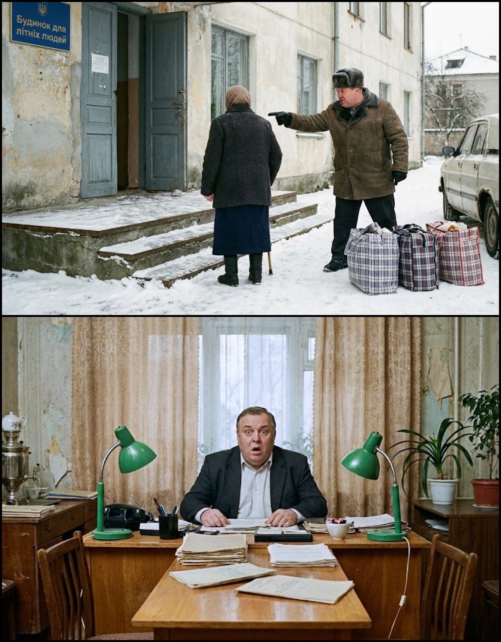 - Gana Bogdanivna, žena koja je celo svoje život posvetila svojoj porodici, zatekla se u trenutku kad je najmlađi član njene porodice, njen sin Dmitro, odlučio za nju – bez njenog pitanja, bez njenog znanja. Na dan njenog 75. rođendana, umesto da bude obasjana ljubavlju i pažnjom, doživela je hladnu, gotovo surovu stvarnost. Dmitro i njegova supruga, Kristina, došli su da joj požele srećan rođendan i iznenade je sa, kako su oni to smatrali, „dobrom odlukom“. Iako su njen sin i snaha tvrdili da je to za njeno dobro, Gana je brzo shvatila da nije reč o pomoći, već o rešavanju „problema“, za koji su je smatrali teretom.