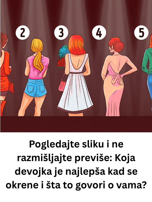 Naime, pitanje je vrlo jednostavno: koja djevojka je najljepša na slici, koja vam ne pokazuje lica? Ovaj test se bazira na intuiciji i prvom izboru koji napravite. Iako se na prvi pogled čini kao zabava, odgovor na ovo pitanje može reći puno o tome kakav ste prijatelj i kako vas okolina zaista doživljava.