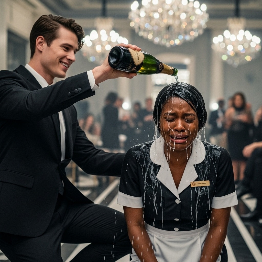 - Richard, u svojoj tipičnoj aroganciji, nije mogao da zadrži komentare: „Znaš li koliko ove cipele koštaju? Ne bi ih mogla priuštiti ni da radiš tri života“, viknuo je pred svima, uveravajući se da je potpuno pod kontrolom situacije. Gosti su šaptali i smeštali se u svojim luksuznim pozicijama, ali Naomi je ostala mirna i dostojanstvena, bez pokazivanja bilo kakvih emocija. Richard nije mogao da veruje, pa je, kao u šali, uzeo novu bocu šampanjca i polio je njom po glavi.