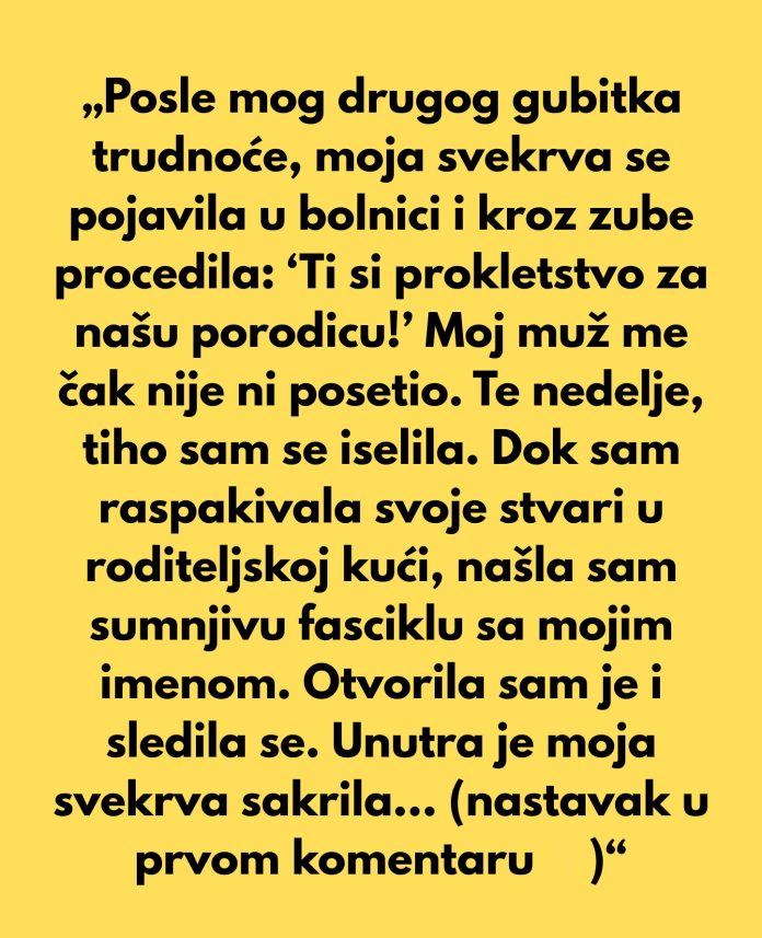 Nakon gubitka druge trudnoće, život glavne junakinje pretrpio je nepopravljiv udarac. Dok su svi oko nje šutjeli, uključujući njenog muža, koji je odlučio da je ne posjeti u bolnici, svekrva je bila ta koja je konačno progovorila. „Ti si prokletstvo za našu porodicu“, izgovorila je te riječi kroz zube, a tišina koja je uslijedila bila je gora od svih napada. Iako su takvi trenuci mogli slomiti svakoga, ona je bila odlučna. Spakovala je svoje stvari i otišla se skloniti kod svojih roditelja, ne znajući da će tamo otkriti nevjerojatnu istinu koja će joj promijeniti život.