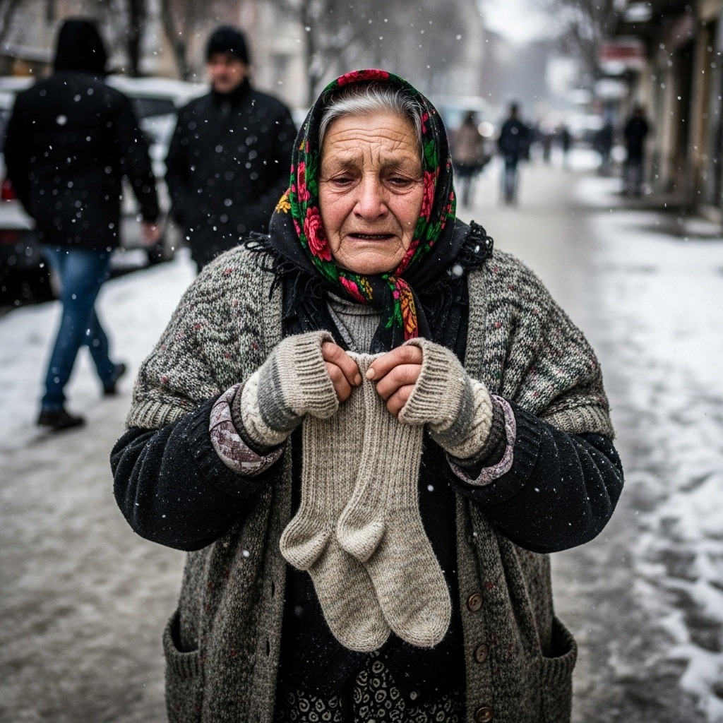 Sarajevo je te zime bilo okovano mrazom; ulice Baščaršije prekrivene injem, zgrade obučene u hladnoću. Nana Fata, stara sedamdeset i pet godina, sjedila je na uglu prometne ulice, oslonjena na ledeni zid. Ispred sebe je imala kartonsku kutiju na koju je pažljivo položila tri para vunenih čarapa — skroman dokaz rada njenih artritisom izobličenih ruku. Živjela je sama, u trošnoj kućici na brdu gdje je vjetar prolazio kroz zidove kao da ih nema. Drva su joj nestala prije tri dana. Da bi preživjela noć, trebalo joj je tek nekoliko maraka, pa je sjedila na minus deset, umotana u sve što je imala, nadajući se da će bar jedan prolaznik stati.