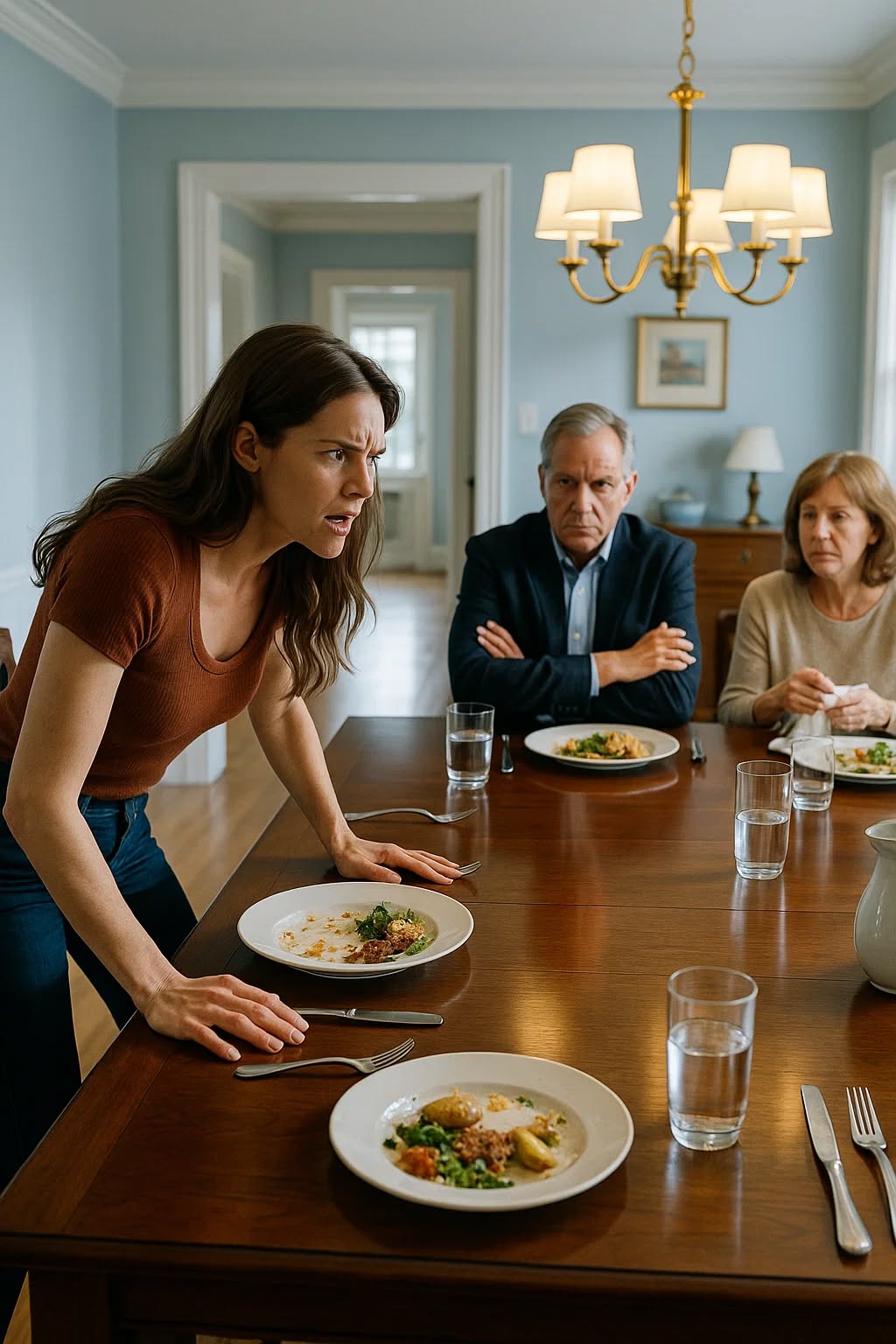 Nakon što je ispunila sve pravne zahtjeve, došla je do večere s obitelji, gdje je njezin brat Kolt ponosno najavio da je kuća njegova budućnost. Na tom stolu nije bio samo obiteljski obrok, već početak ozbiljnog obračuna. Vitni je izvadila fasciklu iz torbe i položila je na stol. Svaki račun i svaki papir govorio je samo jedno: ona je ta koja je sačuvala kuću. “Ovo je istina”, rekla je, a atmosfera u sobi postala je napeta. Otac i Kolt su pokušali minimizirati značaj novca, tvrdeći da je obitelj važnija, no Vitni nije im dozvolila da izbjegnu stvarnost.