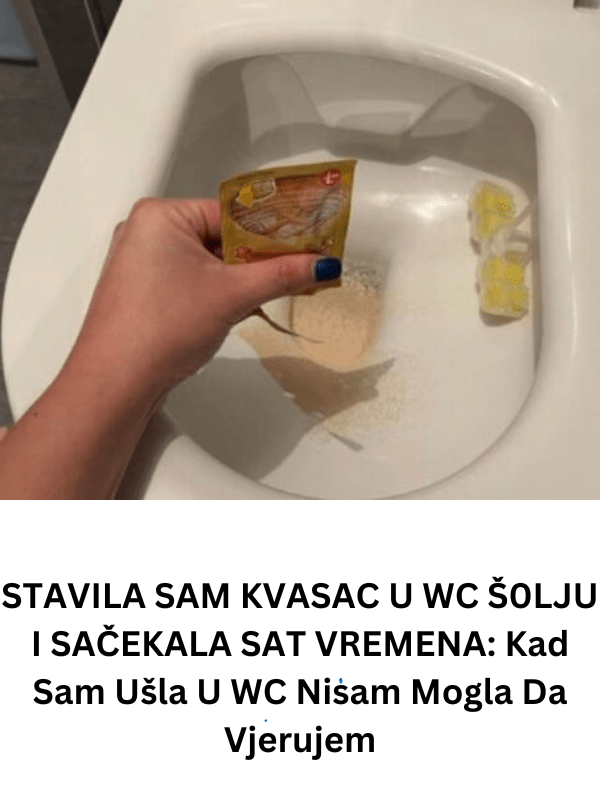 - Jedna domaćica je odlučila isprobati trik sa kvascem u svom WC-u. Na početku nije imala velika očekivanja, jer je mislila da će to biti samo još jedan od onih trikova koji se često viđaju na internetu, a koji na kraju ne donose rezultate. U WC šolju je stavila kesicu suve kvasca, prelila je malo toplom vodom da bi aktivirala kvasac, i ostavila sve da djeluje. Sat vremena kasnije, vratila se u WC, a ono što je vidjela je bilo pravo iznenađenje.
