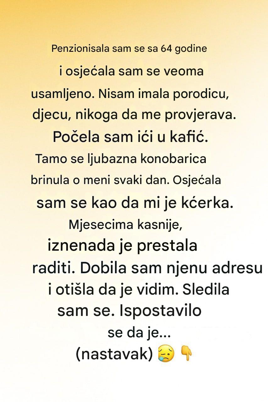 I onda je došao šok. Jednog jutra, konobarice nije bilo. Drugi radnik me je uslužio, ljubazan, ali bez onog prepoznatljivog toplog osmeha. U narednim danima, osećao sam kako mi pritisak raste. Osećao sam da mi nešto važno nedostaje. Možda zvuči neobično, ali činilo mi se kao da se ceo moj svet pomerao. Kada sam saznao da je napustila kafić, odlučio sam da je potražim. Bio je to trenutak koji je promenio mnogo toga u mom životu.