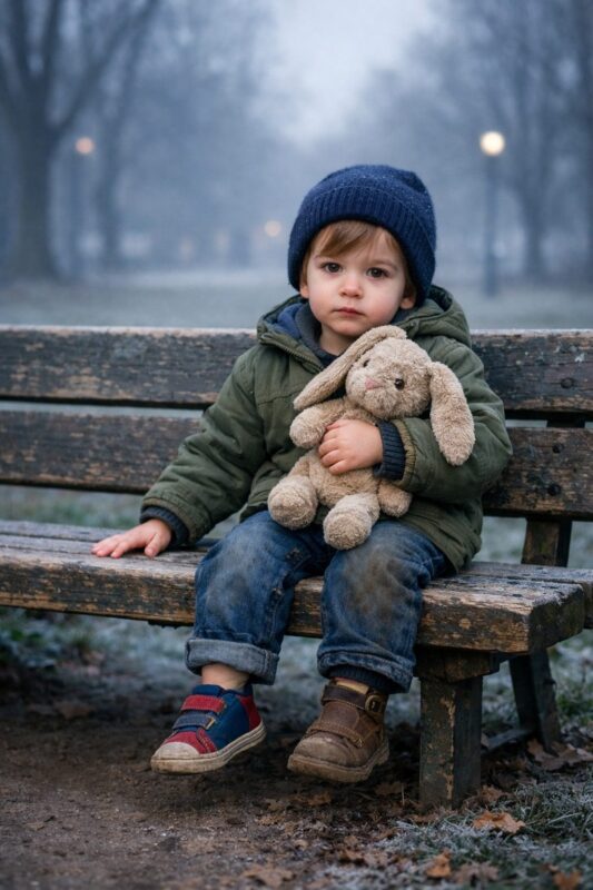 - Svako jutro, u gotovo praznom parku, mali dječak od svega tri godine sjedio bi na istoj klupi. Ljudi su prolazili pored njega, bacali kratke poglede i nastavljali dalje, uvjereni da se radi o običnoj dječijoj igri. Niko nije zastao da se zapita zašto je uvijek tu, zašto sjedi sam i zašto njegovi mali noge vise u zraku, ne dodirujući tlo. Imao je na sebi neskladne cipele, a u rukama je čvrsto držao svog plišanog zeca, kao da mu je to jedina sigurnost koju ima.