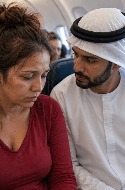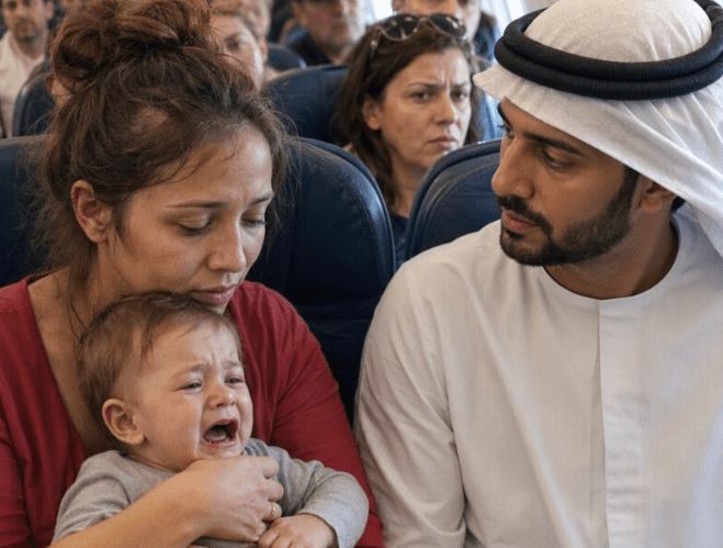 Iako su putnici saosećali, situacija nije postajala lakša. Svi su bili iscrpljeni i uznemireni, ali tada se desilo nešto što niko nije mogao da predvidi. Pored njih, sedeo je mladi šeik, čovek u tradicionalnoj beloj odeći, mirnog lica, ali očigledno podjednako uznemiren plačem deteta. On nije bio samo putnik. Iako je mirno sedeo, nije mogao da ignoriše plač. I umesto da bude još jedan putnik koji će samo gunđati, odlučio je da deluje. Šeik je prišao majci i njenom detetu. Tiho, bez galame, seo je pored njih i počeo nežno da ljulja bebu. Započeo je pevanje tihe, umirujuće melodije, koja je bila poznata svima, ali su je mnogi već zaboravili. Niko nije znao o kojoj pesmi se radi, ali njeni nežni tonovi brzo su delovali na bebu. Plač je postajao tiši, a disanje bebe polako je postajalo stabilno. Majka je gledala u neverici. Njeno srce je bilo ispunjeno olakšanjem. Nikada nije mogla da pretpostavi da će se njen trenutak tuge pretvoriti u trenutak smirenja zahvaljujući ovom nepoznatom čoveku.