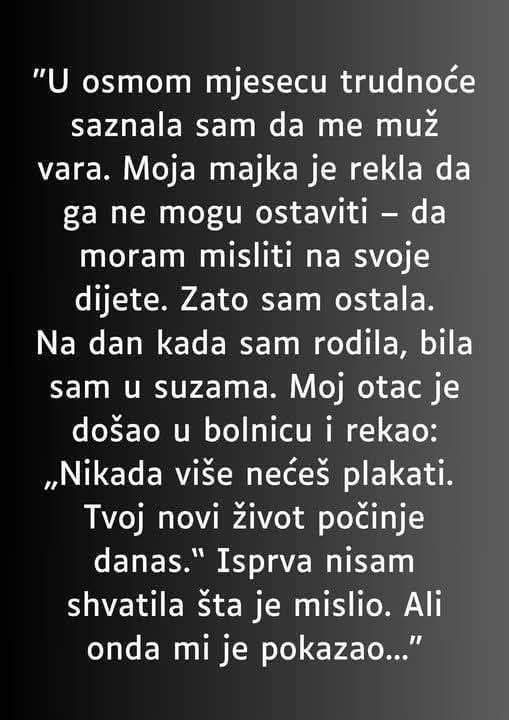 Kada je došao dan porođaja, očekivala je da će njen muž biti uz nju, da će biti podrška, ali umesto toga, bio je hladan i distanciran. Njegove reči su je potpuno slomile: “Da si se više pazila, možda bi sada bilo lakše!” U tom trenutku, ona je samo želela da porođaj što pre prođe, a suze su se slivale niz njeno lice. Umesto nežnosti i ljubavi, od muža je dobijala samo kritike i ravnodušnost. Taj dan nije bio ni približno onome što je zamišljala, niti onome što je trebalo da bude.