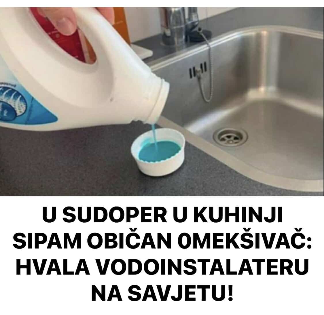 - Omekšivač djeluje tako što, kada se ulije u odvod, prodire u cijevi i razgrađuje naslage. Zbog svojih sastojaka, koji omogućuju da se masnoće lakše uklone, ova metoda može spriječiti nakupljanje ostataka hrane i masti, što je često uzrok začepljenja. Sam postupak je brz i jednostavan: samo nekoliko puta sedmično sipajte pola čaše omekšivača u sudoper, isperite s toplom vodom i uživajte u svježem mirisu i čistim cijevima.