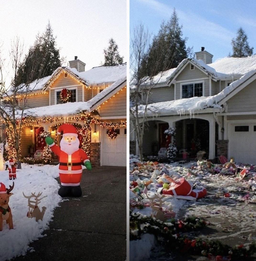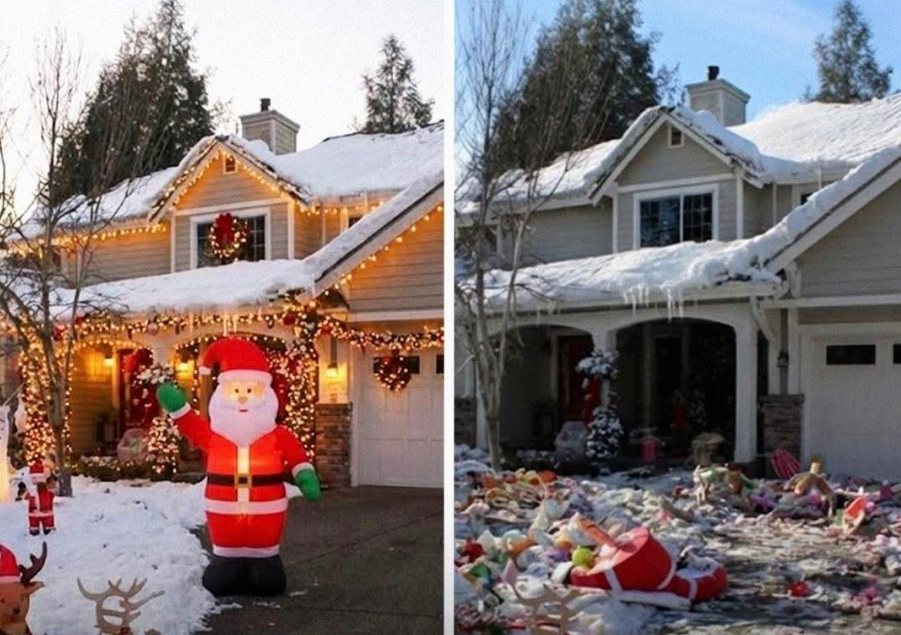 Svake godine, porodica ove žene ukrašava svoju kuću i dvorište, pripremajući se za predbožićnu sezonu. Ove godine su se posebno potrudili: svjetla, Deda Mraz na naduvavanje, drveni irvasi i vijenci – sve je bilo savršeno. Djeca su bila presrećna i puni uzbuđenja, ali sljedeće jutro, kada je žena otvorila vrata, zatekla je totalnu devastaciju. Ukrašeni dvorište bilo je potpuno uništeno. Deda Mraz je bio rasporen, girlande su bile poderane i razbacane po blatu, irvasi su bili slomljeni, kao da ih je neko namjerno gazio. Srce joj je stalo, jer je znala da ovo nije bila slučajnost – neko je ovo uradio s namjerom.