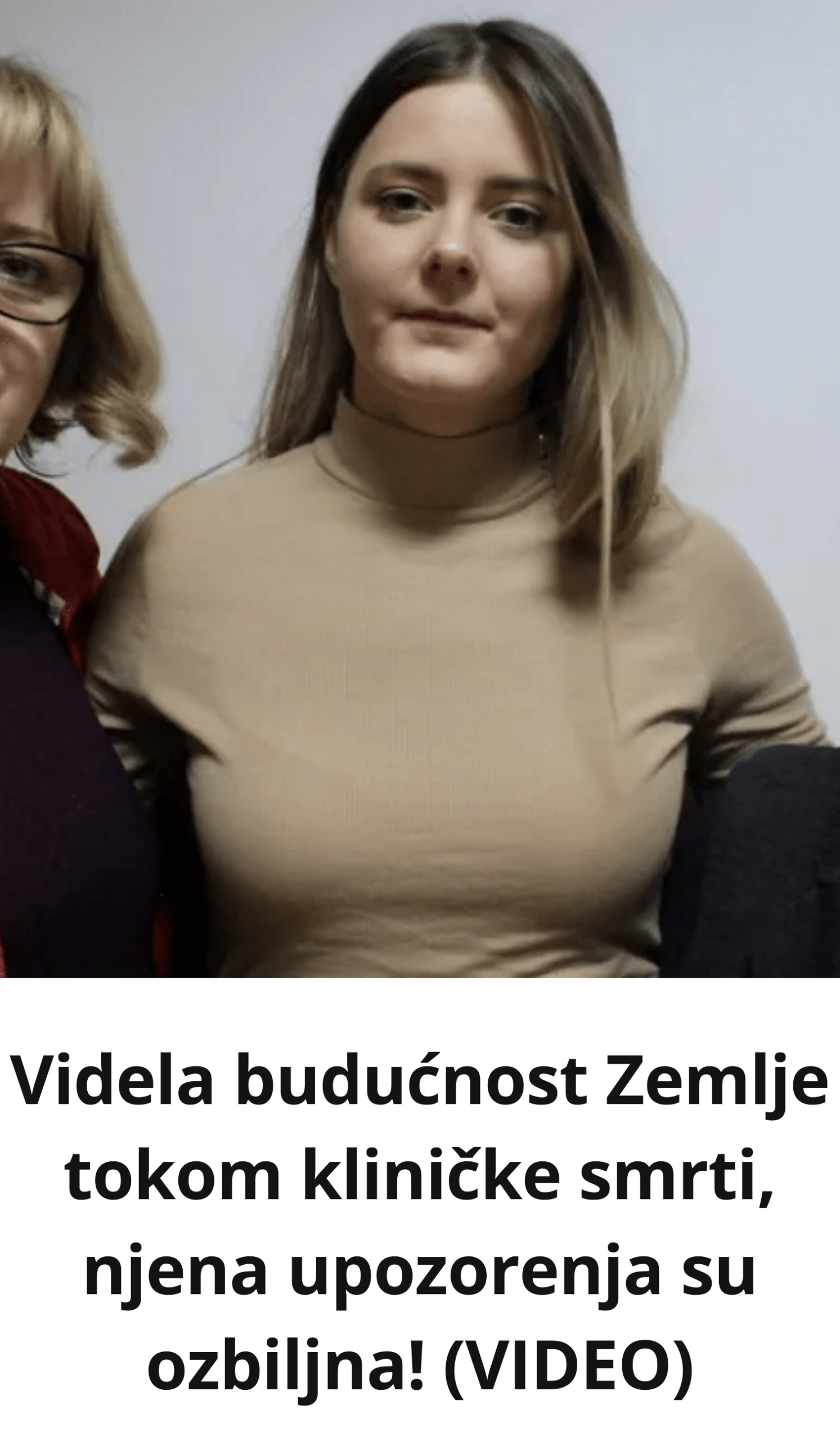 - Prema navodima koje je objavio Daily Mail, dvije žene su podijelile svoja iskustva sa ivice života i smrti. Njihova svjedočanstva izazvala su veliku pažnju javnosti jer ne govore samo o „svjetlu na kraju tunela“, već i o vizijama koje, kako tvrde, prikazuju budućnost čovječanstva.
